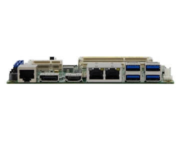 3.5" compact board met onboard Intel Celeron J5040 processor. ondersteunt maximaal 8GB DDR4 geheugen, 6 x USB (4 x USB 3.0 + 2 x USB 2.0), 2 x GbE LAN, 1 x COM, 1 x HDMI (2.0) + 1 x Display poort + 1 x 24-bit LVDS video output en 2 x SATA III.