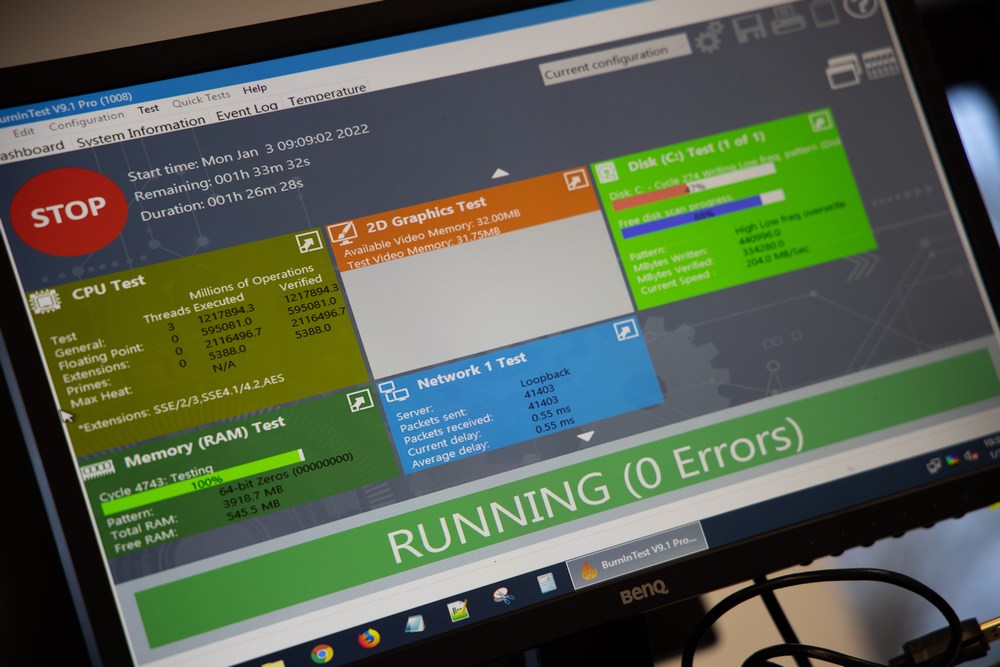 Alle systemen die door HPS worden uitgeleverd worden grondig getest in een minimale tijdsduur van 24 uur. Met verschillende software tools worden alle componenten en I/O aansluitingen grondig getest zodat je zeker bent dat je geen defecte items ontvangt.