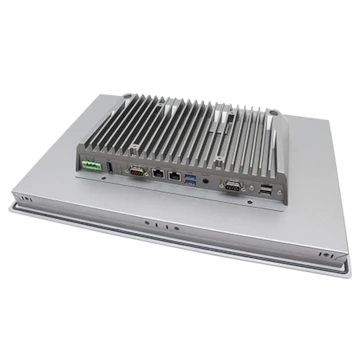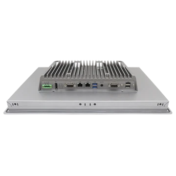 15.6" FWXGA fanless HMI barebone with Intel Pentium N4200 (1.1 GHz) CPU, 4GB DDR3L RAM, Resistive touch screen, 9~36VDC input with adapter, Aluminum chassis.