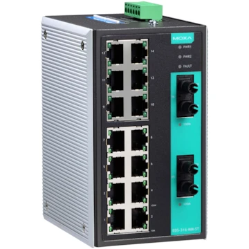 Moxa Industrial Unmanaged Ethernet Switch with 14 10/100BaseT(X) ports, 2 multi mode 100BaseFX ports, ST connector, 0 to 60°C