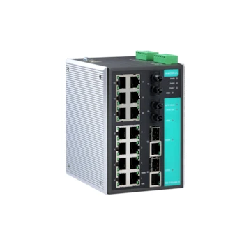 Moxa Industrial Redundant Ethernet switch with 2 10/100/1000 BaseTx ,2 100 BaseFx multi mode and 14 10/100 BaseTx ports with VALN,IGMP Snooping and QoS, ST connector, -40 degree to 75 degree of operating temperature