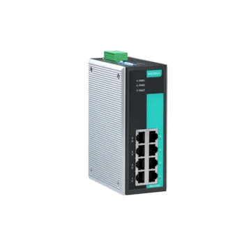 Moxa Industrial Unmanaged full Gigabit Ethernet switch with 8 10/100/1000BaseT(X) ports, 0 to 60°C operating temperature
