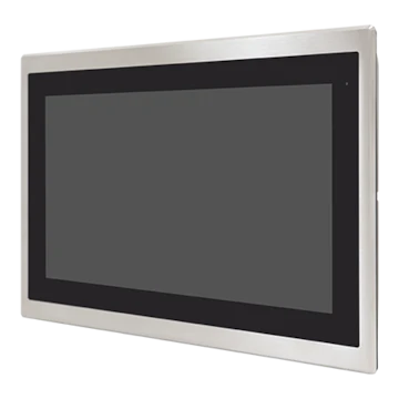 15.6" 1280 x 800 fanless HMI barebone with Intel 8th Gen. Core I3-8145UE, 1 x DDR4 slot, Projected Capacitive touch, 9~36VDC input with adapter, Stainless front bezel and Aluminum chassis.
