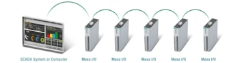 Moxa Ethernet Remote I/O with 2-port Ethernet switch, 4 AIs, 4 DIs, and 4 DIOs