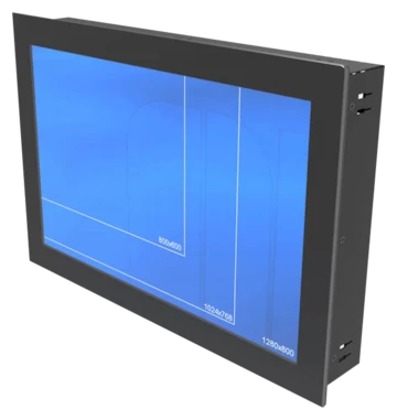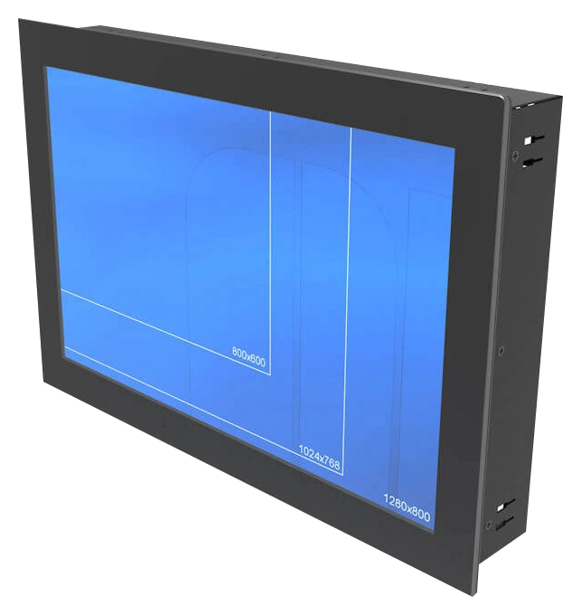 15.6" industrieel widescreen Panel Mount TFT display met glas, maximale resolutie van 1920X1080 en 1 x HDMI + 1 x VGA + 1 x DVI-D + composite video output. Optioneel uit te rusten met Projected Capacitive touchscreen, external dimming, High Bright LED 1200 display, wide range 9~36V power input en Optical Bonding.