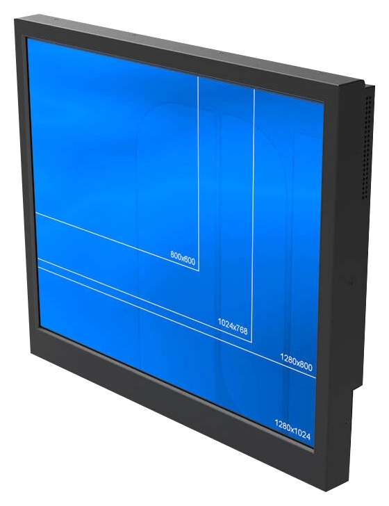 19" industrieel Vesa Mount TFT display met maximale resolutie van 1280X1024 en 1 x HDMI + 1 x VGA + 1 x DVI-D + composite video output. Optioneel uit te rusten met Resistive of Projected Capacitive touchscreen, external dimming, High Bright LED 1500 display, wide range 9~36V power input en Optical Bonding.