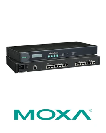 Moxa 16 Port Device Server, 10/100M Ethernet, 3 in 1, RJ-45 8pin, 88-300 VDC, -40 to 85°C