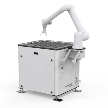 The ProFeeder Tray (former "Light") robotcell consists of a basic module with 1 universal parts tray designed for handling all types of parts. The system supports change of a parts tray - if necessary - the square pattern tray can be set instead of the default teardrop shape.