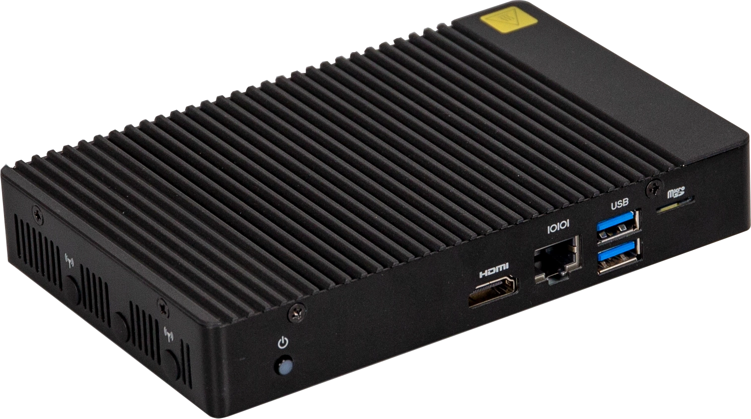 Gigabyte fanless industriële Mini PC met Intel® Celeron® J6412 processor, 3 x HDMI, 2 x GbE LAN, 4 x USB en 1 x COM.