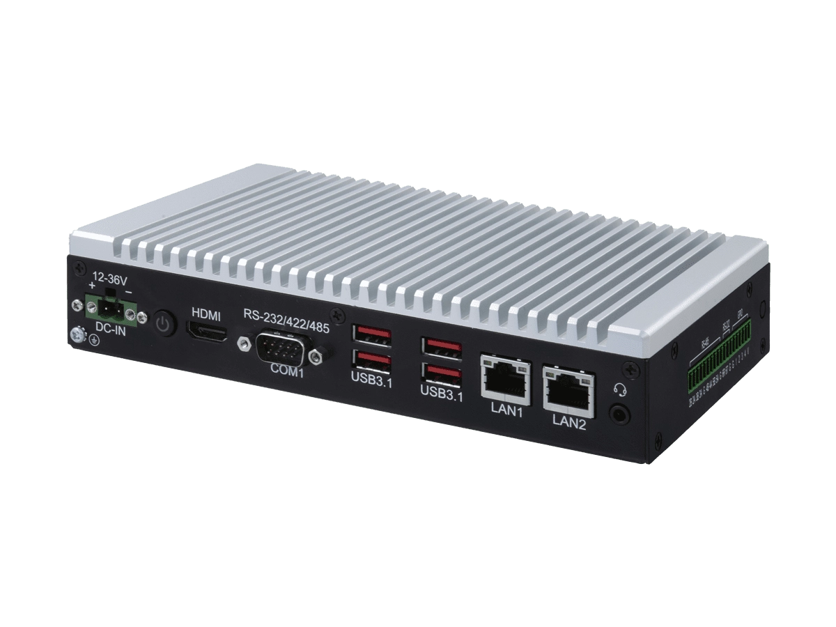 Industrial fanless computer (Barebone) w/ Intel Celeron J6412 w/ COM_6 (4_ isolated R485), USB_4. LAN_2, HDMI*1, 4-bits GPIO, DC12~36V, 200 x 130 x 44 mm