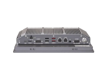 12.1’’ 1024x768 (4:3) fanless HMI barebone with Intel Celeron J6412 (2.0 GHz), 1x DDR4 slot up to 32GB, 1x M.2 2242 SSD slot, Resistive touch screen, DC 12~36V input, 2x COM, 4x USB, 2x LAN, 1x HDMI, IP66 front panel, Aluminium chassis