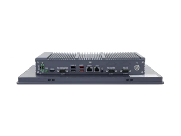 21.5’’ 1920x1080 (16:9) fanless HMI barebone with Intel Celeron J6412 (2.0 GHz), 1x DDR4 slot up to 32GB, 1x M.2 2242 SSD slot, Projected Capacitive touch screen, DC 12~36V input, 3x COM, 4x USB, 2x LAN, 1x HDMI, IP66 front panel, Aluminium chassis
