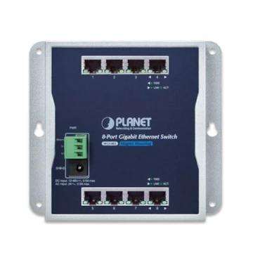PLANET IP30 8-Port Gigabit Wall-mount Switch (-10 to 60 C), dual redundant power input on 12-48VDC terminal